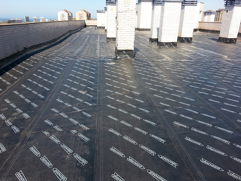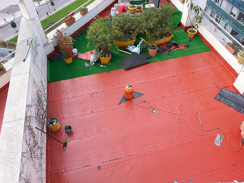 Impermeabilizamos terrazas y cubiertas transitables y no transitables mediante doble capa de láminas asfálticas y gres de primera calidad antideslizante Clase A